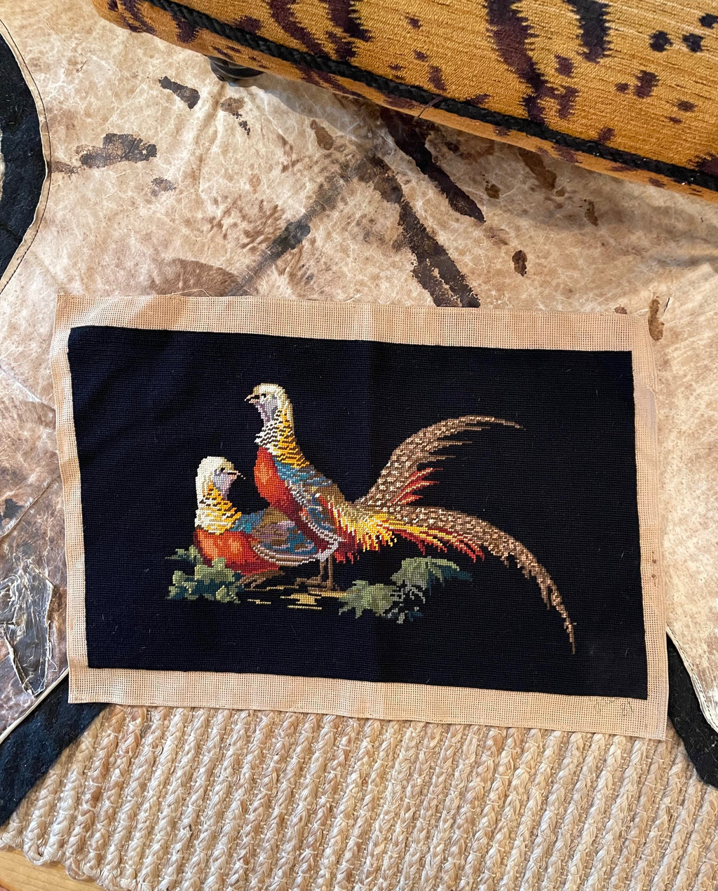 Vintage Hand-Stitched Golden Pheasant Needlepoint Tapestry